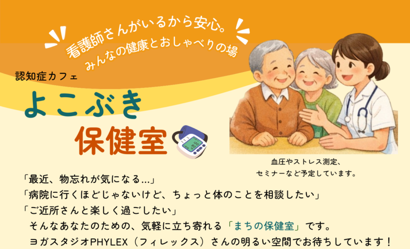 One Nurseで認知症カフェを始めました。 地域に根ざす保健室、として継続していきます。 名古屋市緑区横吹町 ヨガスタジオフィレックスさまが場所を提供下さいました。